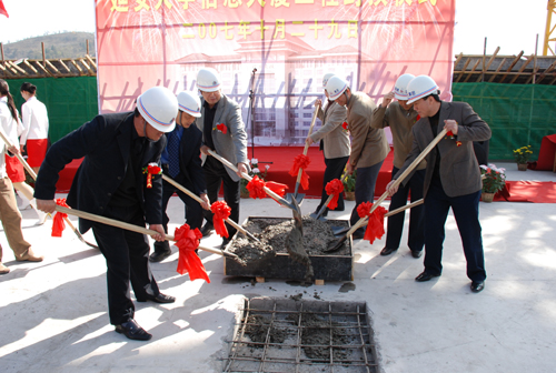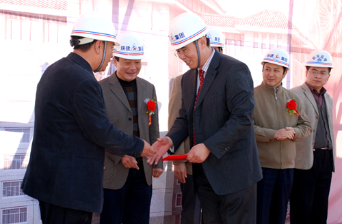 随着鞭炮礼花齐鸣,与会的领导同志共同为信息大厦浇注了最后一斗水泥,标志着信息大厦的顺利封顶。
