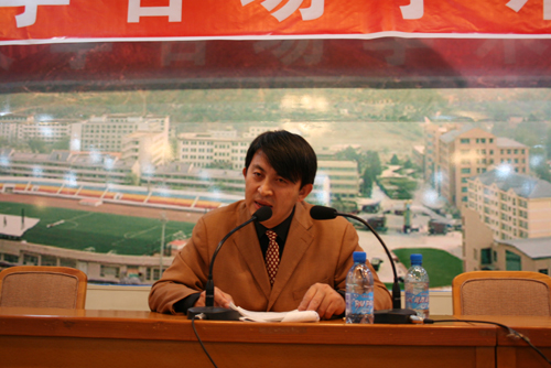 本网讯 9月27日下午,文学院梁向阳副教授在校多功能厅为本院学生作了题为“陕北文化与文学创作”的学术报告。科技处郭延飞主持了报告会。