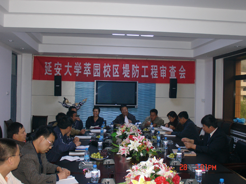 本网讯 为了加快萃园校区建设工程,9月28日下午,学校在逸夫楼304会议室召开了《延安大学萃园校区防洪工程初步设计》审查会。副校长张威虎和规划处、基建处负责人,延安市水利局、城区防汛办、地下水工作队、区河道处等有关部门的领导和专家及陕西省水利电力勘察设计研究院设计人员参加了会议。会议由延安市水土水土保持局副局长张慧明主持。