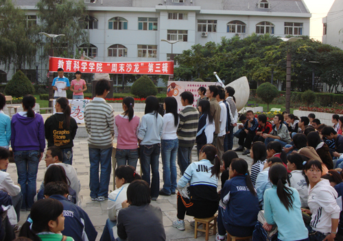 本网讯 9月24日晚,教育科学学院在兰蕙园举行了“周末沙龙”中文脱口秀活动。2005、2006级5个班的代表队和部分师生参加了活动。