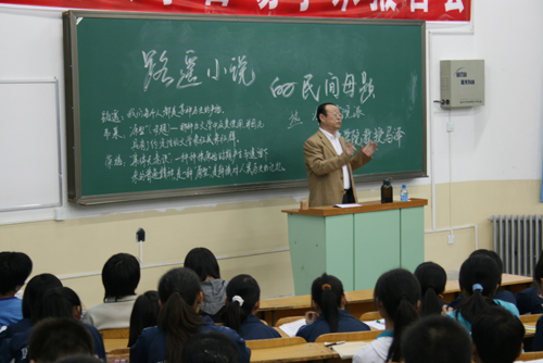 马泽教授围绕“路遥小说的民间母题”的主题,阐述了文学界对路遥的研究,评析了以《人生》、《平凡的世界》为代表的路遥小说的特点,评判了路遥小说原型即母题在作品中的运用。马教授还对同学们给予厚望,希望他们学习路遥精神,探究人生道路,拥有“精彩的人生,平凡的世界”,成为像路遥一样的人。