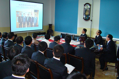 下午4:00,陈教授走访考察了政法学院。在政法学院会议室,陈教授听取了院长高尚斌教授的学院工作汇报后,与在场人员进行了交流,并对学院的工作给予了充分的肯定。