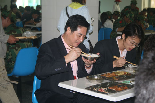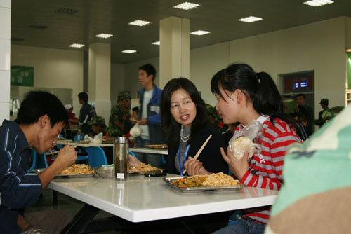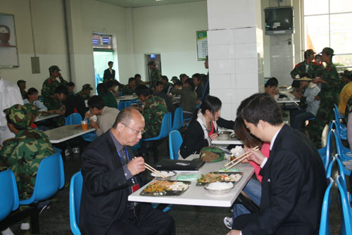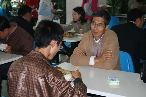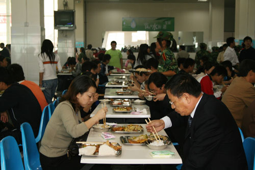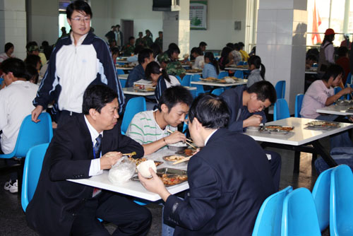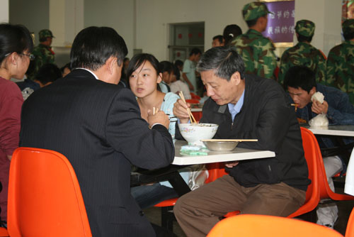 9月25日12:00,评估专家组组长钟秉林教授,副组长李元元教授,评估专家组成员宋益乔教授、韩焱教授、张英杰教授、肖蘅教授,专家组秘书张玲老师以及我校校领导刘建德、廉振民、刘庆利在我校雅苑学生餐厅与学生共进午餐。就餐过程中,专家们就餐厅设施,饭菜的质量、价格等问题与餐厅工作人员及就餐学生进行了亲切交流。