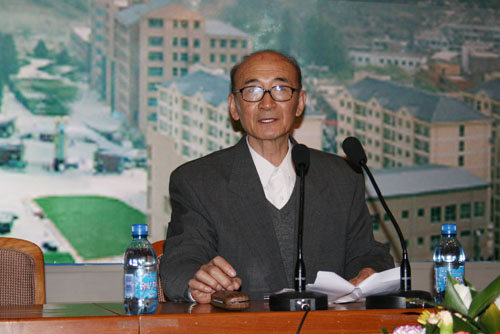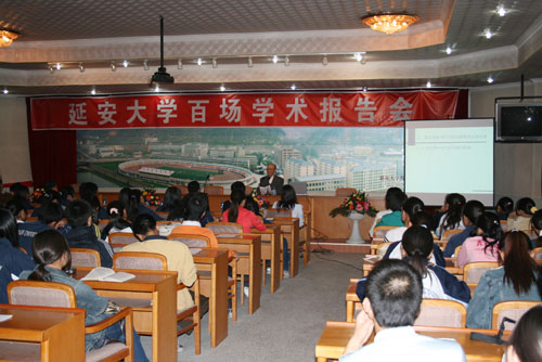 本网讯 9月23日晚,文学院退休教师刘育林教授在校多功能厅为我校师生作了题为《陕北方言三题》的学术报告,报告会由科技处郭延飞同志主持。