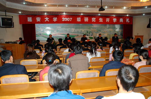 本网讯 9月18日下午,我校在多功能报告厅举行2007级研究生开学典礼,校领导刘建德、廉振民、刘庆利、张威虎、胡俊生和各学院主管研究生工作的院长、研究生秘书、导师及2005、2006级的研究生代表及2007级全体研究生参加了典礼。