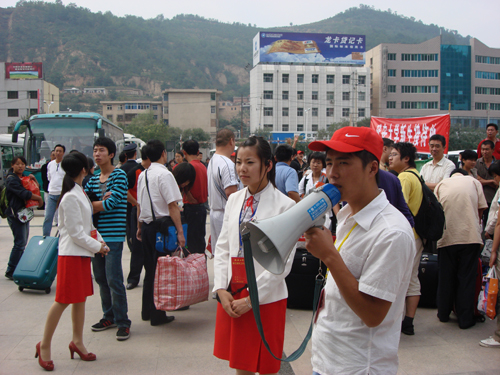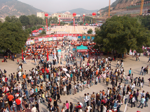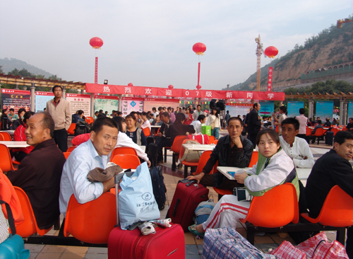 本网讯 9月10日,我校迎来了又一批新的主人,从中午10时起,学生处在延安火车站,延安汽车南站、东站设立新生接待站。从各车站至学校的每辆迎新车上,均配备有一名我校的志愿宣讲者,她们身着礼服,朝气蓬勃,用动听的声音介绍着沿途经过的每个地方和圣地延安的风土人情,以主人翁的姿态讲述伟大母校成长、发展的历史,同时用自己的亲身经历向每一名新生和家长讲解着近几年学校发生的翻天覆地的变化。学生处还在窑洞广场设立了家长休息区,鼓励新生自己独立办理入学手续。小红帽服务站还有免费的矿泉水和热水供应;今年的学生公寓用品领取点设在每栋学生公寓楼下,以便更快捷的为新生服务。