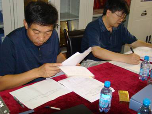 检查团正在检查验收教科院教学档案