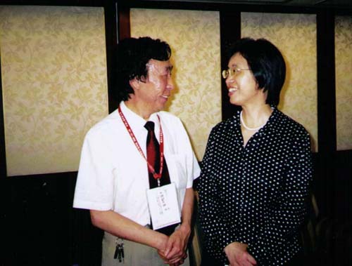 毛海东(左)与世界心理治疗学会副主席、中国心理学会临床与咨询心理学专业委员会主任、北京大学心理系教授钱铭怡在人民大会堂小会议室进行交流