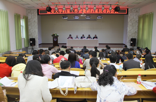 本网讯5月15日下午,全校档案工作暨兼职档案员培训会议在克阿楼礼堂举行,副校长、校档案工作委员会主任胡俊生,校档案工作委员会副主任、两办主任姚正宽,校档案工作委员会全体成员,各部门、单位、学院主管档案工作领导和兼职档案员,以及档案馆全体工作人员参加了会议。会议由校档案工作委员会副主任、档案馆馆长曾鹿平主持。