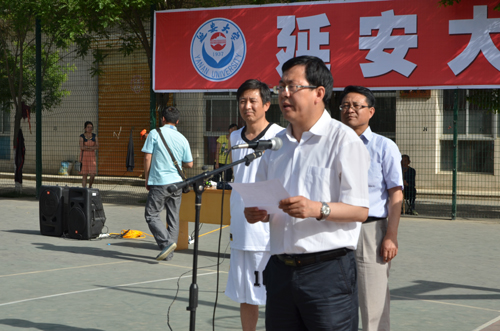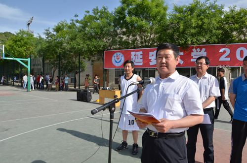 校党委副书记田伏虎在致辞中希望通过这次比赛,促进我校教职工文体活动的开展与交流,促进各部门之间的友谊和联系,不断提高我校教职工篮球比赛的竞技水平;展示我校教职工团结进取、蓬勃向上的精神风貌和更快、更高、更强、勇于拼搏的体育精神。随后,来自机关一分会的张军和体育学院张生伟分别作为运动员代表和裁判员代表宣了誓。