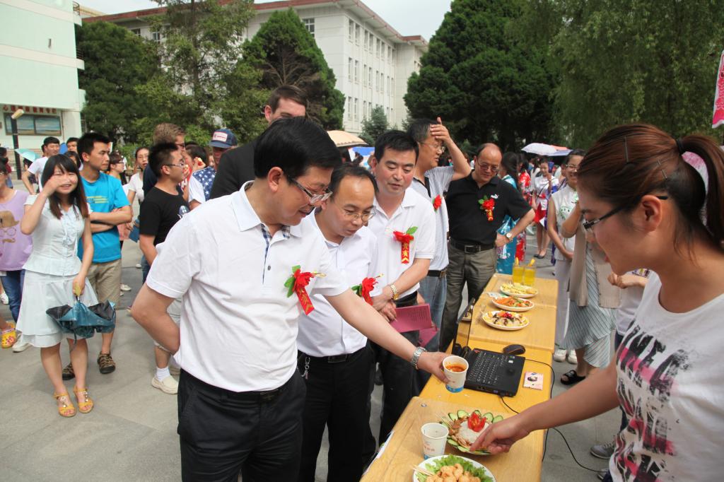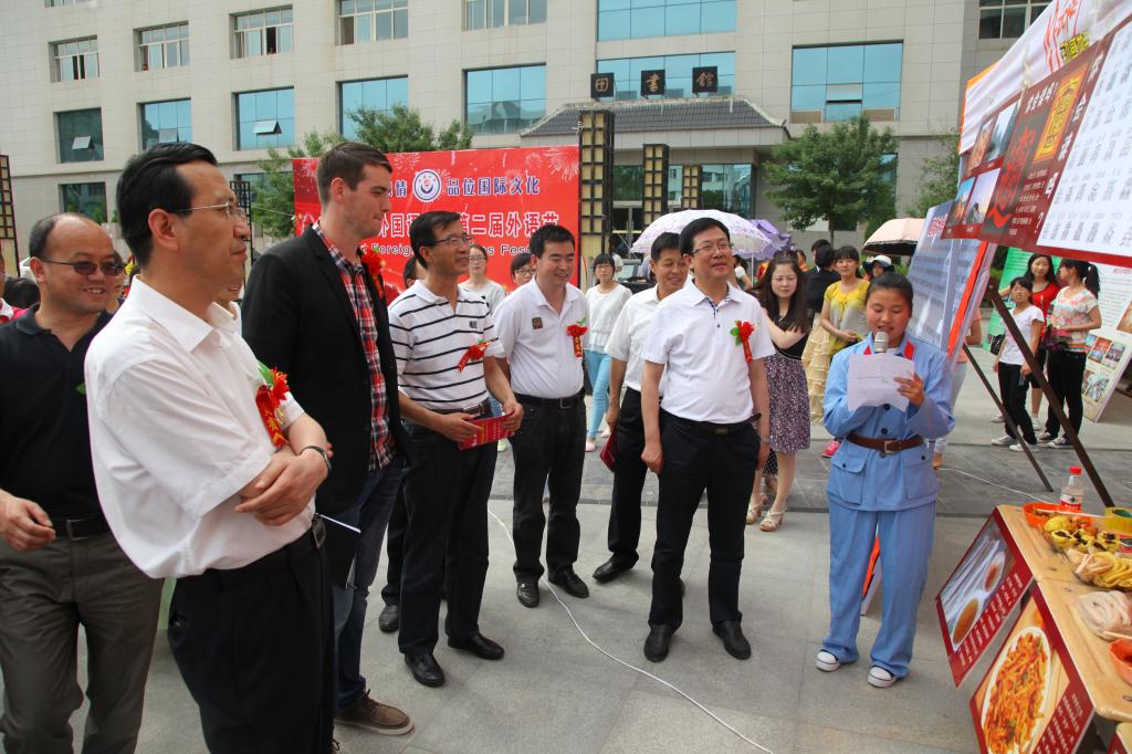 本网讯 5月30日,由外国语学院和国际文化交流学院主办,建筑工程学院与鲁迅艺术学院协办的我校第二届外语节开幕式暨异域风情展活动在先锋广场举行。校党委副书记田伏虎、教务处处长武忠远、学工部部长高峰、国际文化交流学院副院长杨向宏、美国大学生访问团团长杰夫、建筑工程学院党委副书记付旭、鲁迅艺术学院党委副书记郝磊、外国语学院党委书记董振文、党委副书记王随卷等出席了这次活动。开幕式由外国语学院院长吴卫东主持。