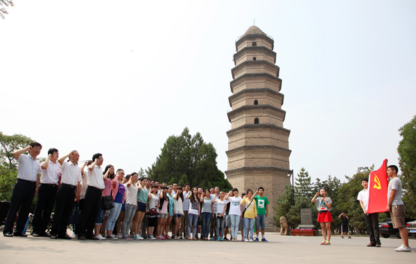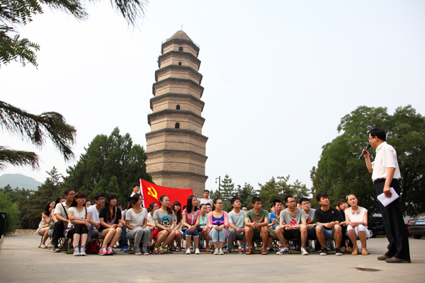 本网讯 “在同学们即将离开延安大学,离开革命圣地,作为大学里最优秀的群体——大学生党员,来到中国革命的标志和象征地,延安宝塔山上,上毕业前的最后一次党课,很有必要。”6月24日上午,经管学院50余名本科和研究生毕业生党员在毕业前夕,来到延河之滨,宝塔山上,聆听了一堂特殊而难忘的党课。