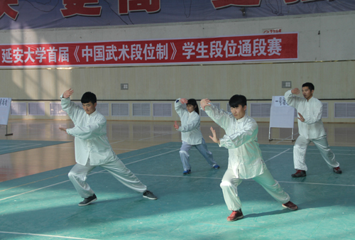本网讯 我校被陕西省教育厅确定为第一批陕西省中国武术段位制学生段位考评试点学校。根据试点学校工作实施方案,12月22日,由我校体育工作委员会主办、体育学院承办的首届《中国武术段位制》学生段位通段赛在我校体育馆举行。来自我校不同年级、不同专业的200多名学生参加了比赛,共有233人通过比赛被授予中国武术三段(金鹰徽章)。