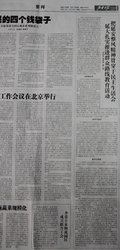 本网讯 12月25日,《延安日报》在第二版要闻版,以超过三分之一的篇幅,发表了我校刘述进、谭虎娃、袁广斌采写的通讯《把延安整风精神贯穿于民主生活会——延大扎实推进群众路线教育实践活动》。