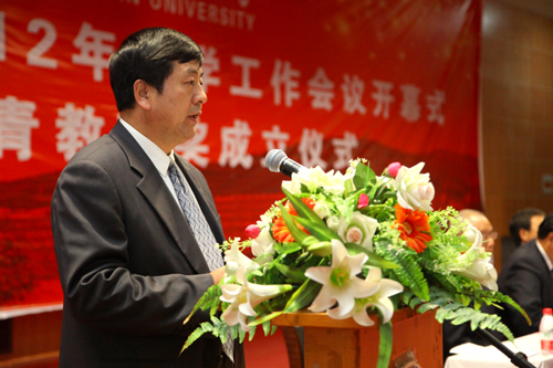 许静洪副校长在会上致了辞。他在致辞中回顾了我校外国语学院的历史,并向刘意青教授和多年来为学校教育事业的改革、建设和发展默默奉献和做出重要贡献的几代外语人表示了衷心的感谢,同时祝愿会议取得预期成效,为我校外语教育教学工作开辟新的局面。外国语学院院长梁润生在会上作了题为《立足育人根本,突出教学中心,为全面提高外语教育教学质量而努力奋斗》的主题报告。他在报告中回顾和总结了学院2010年教学工作会议以及2011年学科建设工作会议以来,外国语学院在教学、科研和管理工作中所取得的成绩和经验,对存在的问题与不足进行了剖析,并提出了今后的工作设想。梁润生院长在报告最后,还动情地回忆了刘意青教授20年来对延安大学外国语学院的无私帮助和奉献,并对她致以了深深的敬意。