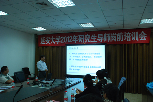 本网讯 9月1日,我校2012年新遴选导师岗前培训会议在图书馆二楼会议室举行,2012年新遴选的全体导师、研究生学院及研究生教育督导组全体人员参加了培训会。培训会由研究生学院副院长付峰主持。