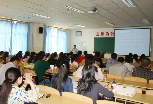本网讯 5月25日下午,我校青年教师教改科研项目申报专题报告会在玉章楼5203教室举行。报告会由计算中心、教务处、网络中心、科技处等部门联合主办,教务处处长武忠远、计算中心主任张根耀、网络中心主任张成、科技处副处长吕磊参加了报告会,近百名青年教师聆听了报告。报告会由张根耀主任主持。