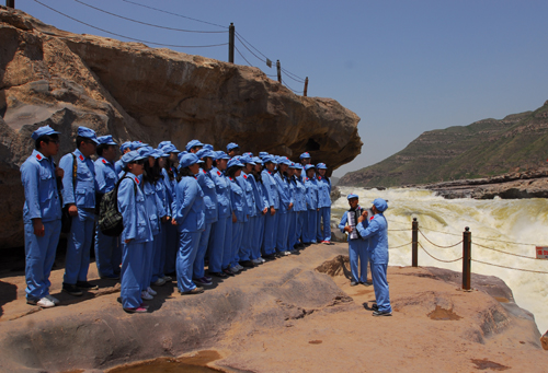19日上午,学员们来到南泥湾,参观了大生产展览馆,听取了我校马列学院教授郝琦的专题讲解《发扬艰苦奋斗精神,始终保持共产党人政治本色》;下午,学员们参观了黄河壶口瀑布,在壶口瀑布前,学员们身着红军服,齐唱《保卫黄河》,体验了恢弘澎湃的黄河文化。