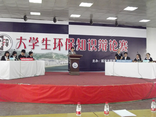 本网讯 4月21日至22日,由延安市环境保护局与我校共同举办的第十届“延河论坛”辩论赛,在我校活动中心举行。比赛的主辩题全部围绕环境保护展开,13个学院的代表队参加了辩论。比赛共分7场,分别由计算机学院对阵能源学院、教育科学学院对阵公管学院、政法学院对阵管理学院、生科院对阵信息学院、财经学院对阵历史文化学院、外语学院对阵化工学院、文学院对阵化工学院。比赛邀请了延安市环保局领导、卫生局领导和延安市电台资深记者,以及我校部分专业教师担任了评委。