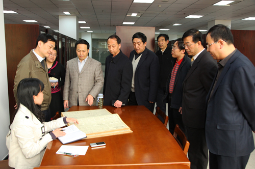 在校史陈列馆,张大良司长仔细听取了工作人员的讲解,并就延安时期高等教育的发展状况、组织方式、设置形式等进行了询问。张司长一边听,一边看,并不时与崔智林校长和胡俊生副校长交流,了解延安大学目前的发展情况。在图书馆,张司长参观了中共党史资料室,了解了我校中共党史特色专业的建设情况,并与在图书馆查阅资料的学生进行了交谈。行至九楼红色收藏展览室,张司长对我校举办红色收藏展览表示了肯定,并就自己的见闻提出了宝贵意见。