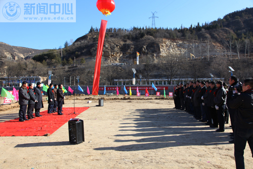 崔智林校长和张威虎副校长的讲话结束后,参加奠基仪式的校领导和各单位负责同志走到奠基石前,手握铁锹,为教职工公寓培土奠基。