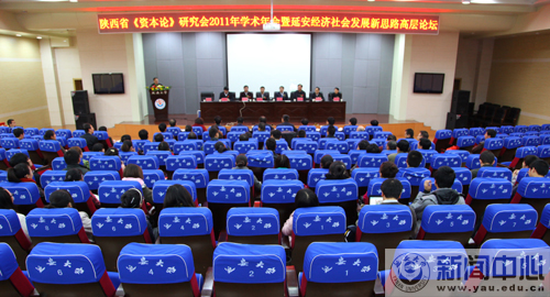 本网讯 由陕西省《资本论》研究会、延安市人民政府和延安大学主办,我校社会科学处、管理学院和财经学院联合承办的陕西省《资本论》研究会2011年学术年会暨延安经济社会发展新思路高层论坛,于11月25至27日在我校举行。来自全省各高校和研究院所的60多位经济学界专家学者,以及我校管理学院和财经学院师生200多人参加了会议。