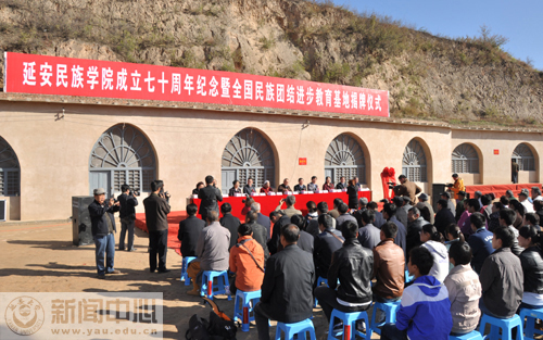 本网讯 10月16日上午,延安民族学院成立70周年纪念暨全国民族团结进步教育基地揭牌仪式在民族学院旧址举行。延安大学校友总会名誉会长、内蒙古校友会会长、内蒙古延安精神研究会会长、原全国政协常委、原内蒙古自治区政协副主席云照光,我校党委副书记、校长兼延安大学校友总会会长崔智林,延安市政协主席、延安大学延安校友会会长樊高林,陕西省民委原副主任苏凤华,陕西省民委副主任马克尔,民族出版社副社长李有明,中央民族干部学院副院长徐莹,以及原民族学院师生、内蒙古延安民族学院校友会暨延安大学校友会、陕西省宗教文化交流中心和中国延安干部学院代表等100余人参加了仪式。仪式由中共延安市委统战部副部长、民族与宗教局局长黄庆琳主持。