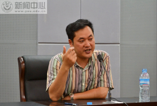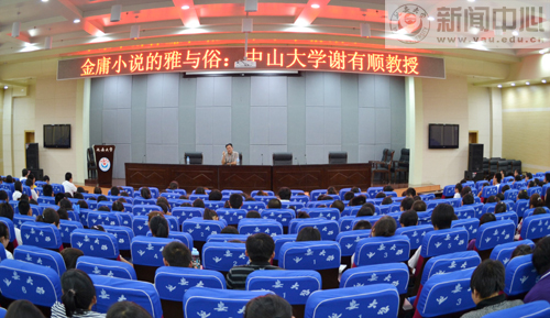 本网讯 应我校社科处和文学院邀请,8月29日晚,广东省文艺批评家协会副主席、中国当代文学研究会理事、一级作家、中山大学中文系博士生导师谢有顺,在图书馆十楼报告厅为我校师生作了题为《金庸小说的雅与俗》的学术报告。报告会由文学院副院长惠雁冰主持。