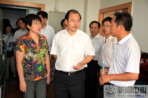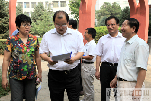 在逸夫楼前,奚正平厅长听取了崔智林校长的情况介绍,了解了我校的办学历史和近年来科技工作的基本情况。在参观完我校校园、校史陈列馆和窑洞公寓后,奚正平厅长来到我校陕西省区域生物资源保育与利用工程技术研究中心和陕西省化学反应工程重点实验室,分别听取了陕西省区域生物资源保育与利用工程技术研究中心主任陈宗礼和化工学院院长高楼军、实验室秘书付峰的汇报,并实地考察了两所重点实验室的建设情况。