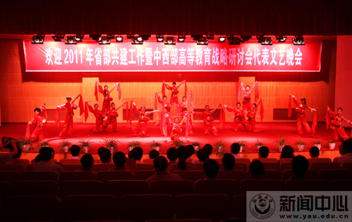 晚上,与会代表在我校5·23音乐厅观看了由我校师生表演的极富陕北特色的文艺晚会。