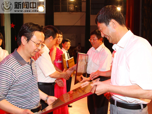 张威虎和胡俊生副校长为获得优秀组织奖的单位颁奖