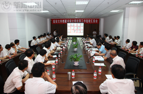 听完崔校长的汇报后,省委教育工委宣教处领导、验收专家和我校与会的校处级领导,共同观看了延安大学文明校园建设巡礼专题片。