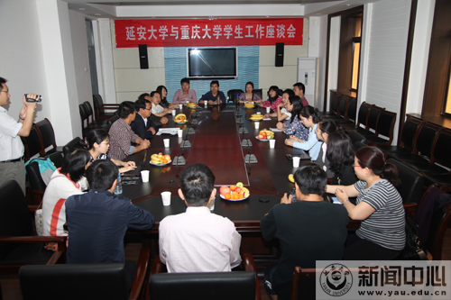 本网讯 5月30日,重庆大学学工队伍一行21人来我校进行考察交流,并在逸夫楼第三会议室与我校学生处全体工作人员进行了交流和座谈。座谈会上,我校学生处处长韩卿元与重庆大学学工部副部长罗涤先后进行了情况介绍,并表达了今后进一步加强合作交流的意愿。随后,双方就辅导员队伍建设、学生思想政治教育、学生资助等工作进行了交流和探讨。座谈结束后,罗涤副部长一行还参观了我校校园和校史陈列馆。