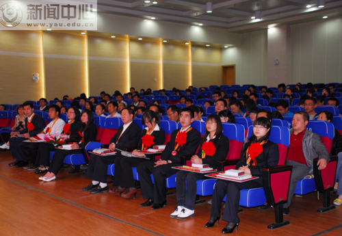 参加颁奖大会的获奖师生和各学院师生代表