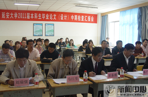 本网讯 5月15日上午,我校在隆基楼3103教室举行2011届本科生毕业论文(设计)中期检查报告会,13位被抽查的学生以PPT的形式向专家组汇报了个人毕业论文(设计)的工作进程。本次检查汇报会的专家由副校长胡俊生,教务处处长齐广才,评估处处长王东维,教学督导团副团长马江生、师养荣,管理学院副院长姬雄华,教科院副院长刘瑞儒以及计算机学院副院长王文发组成。各学院教学秘书、被抽查学生及其论文指导教师等参加了会议。报告会由教务处副处长解文元主持。