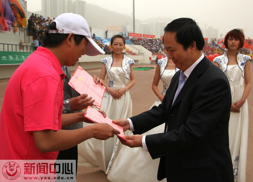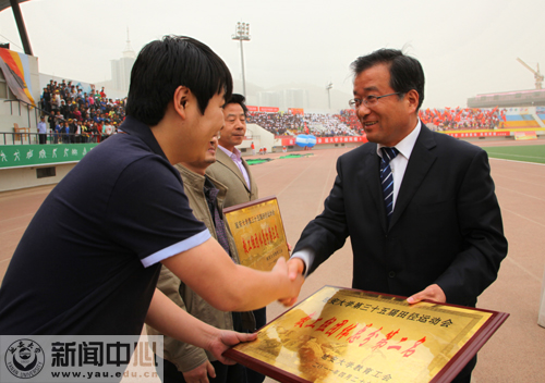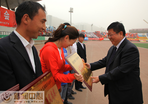 随后,党委书记刘建德,党委副书记、校长崔智林,党委副书记、工会主席高延龙,副校长、延安大学运动会委员会主任胡俊生等为获奖单位颁了奖。