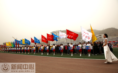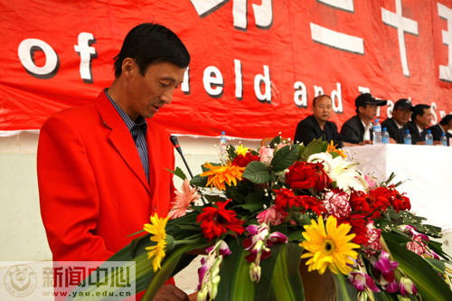 颁奖结束后,胡俊生副校长致了闭幕词。他在致辞中指出,本届田径运动会,师生参与程度高,学生观众精神风貌好,竞赛水平有进步,文体表演质量高。运动会期间,运动员们顽强拼搏,成绩优异;啦啦队激情四射,热情高涨,志愿者们精心服务,不辞劳苦;裁判员们始终坚守岗位,敬业守德。隆重、热烈、井然有序,激情奔放,活力四射,是贯穿本次田径运动会始终的主色调。他希望大家以本次运动会为契机,加强体育锻炼,提高身体素质,以健康的体魄、饱满的热情,全身心地投入到学习和工作中去,并号召师生们将本届运动会所表现出来的团结协作、吃苦耐劳、创先争优的精神风貌融入到今后的工作和学习中去,融入到推动学校内涵发展、特色发展、和谐发展的实践中去,为创造延安大学的美好明天而共同奋斗。