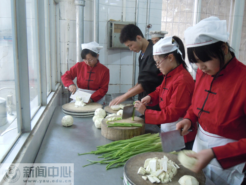 这次活动将学生分为采供组、烹饪组、服务组、周边饭菜价格调查组等四个小组展开工作,学生按食堂流程分别参与了市场采购、成本独立核算、厨房亲手加工、窗口亲自售饭等环节。活动期间,饮食管理科组织学生参观了餐厅操作间,让学生了解了餐厅的食品安全管理、卫生状况、操作流程等方面的专业知识。活动期间,伙食管理部门还举行了饮食工作座谈会,征求了学生对饮食工作的意见和建议。