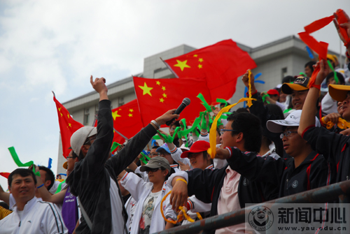 “致延大的运动骄子们……” (学生记者陈城摄)