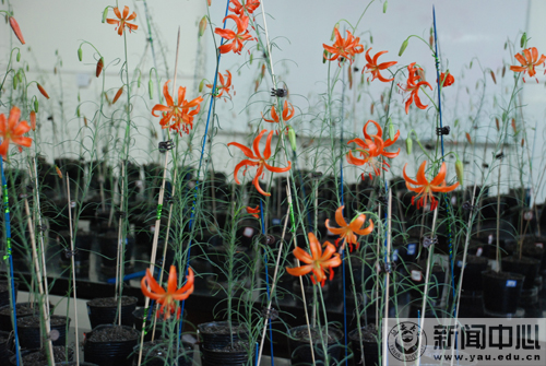 一曲《山丹丹开花红艳艳》唱红了大江南北,唱出了革命志士为人民的情怀,更唱出了革命队伍和人民的鱼水情。山丹丹在延安红色文化中象征着豪迈和似火的热情,象征着可以燎原的革命星火,它的花色纯正而鲜艳,不仅是一种植物,更是人们心中对延安革命的一个象征。过去,我们只能在七八月份才能见到山丹丹开花的景象。近年来,随着自然环境出现的新变化,山丹丹花已濒临灭绝,为了拯救这一花种,在延安市园林处的支持下,我校生命科学学院王延峰博士带领陕北环境资源生物技术研发团队,对延安地区山丹丹的分布、繁殖体系、生长机理、花期调控等进行了不懈探索,利用分子发育调控手段,结合现代花卉无土栽培生产工艺,实现了山丹丹花的反季节开花,并有望实现山丹丹的四季开花。我校生命科学学院陕北环境资源生物技术研发团队成员包括教师贺晓龙、张向前、董晓璞、王晓涧,以及学生杨宗保、郭丹丹、谢银春、王鹏、冯旭和田鹏飞。