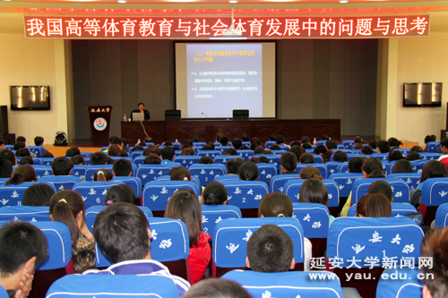 本网讯 4月9日晚,首都体育学院休闲与社会体育系主任李相如教授,应邀在图书馆报告厅为我校师生作了题为《我国高等体育教育与社会体育发展中的问题与思考》的学术报告。报告会由体育学院副院长卢忠瑾主持,体育学院副院长郑兵作了总结发言。
