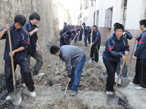 到达劳动地点后,后勤处绿化科科长王忠胜亲自为学生做了示范。随后,学生们就争先恐后地开始干活。尽管土很硬,地里的石头多、杂草多,但是大家发扬不怕苦不怕累的雷锋精神,争着干、抢着干;尽管每个人都汗流浃背,有的同学手上还磨起了水泡,但是没有一个人喊累,没有一个人喊停,大家互相配合、互相鼓励,经过近两个小时的劳动,终于又快又好地完成了任务。