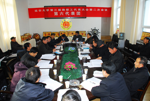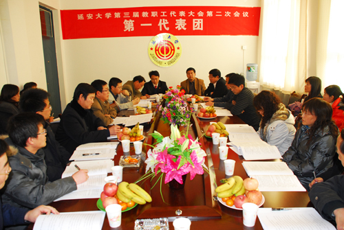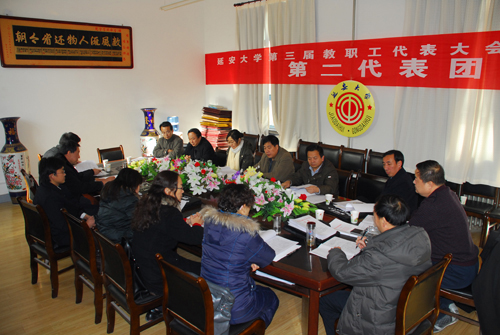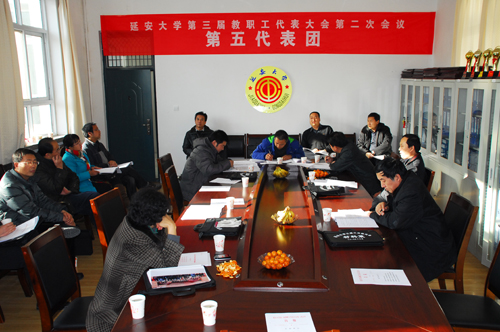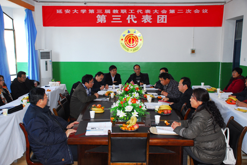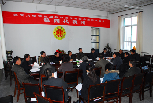 本网讯 今天下午,参加我校第三届教职工代表大会第二次会议的正式代表、列席代表和特邀代表,分为6个代表团,分别在能源学院会议室、生命科学学院会议室、外国语学院会议室、化工学院会议室、计算机学院会议室和信息学院会议室,围绕学校工作报告、学校财务工作报告、“十二五”事业发展规划和《延安大学岗位设置管理实施办法》等内容展开了讨论。代表们就教职工的待遇、住房等民生问题,以及学科建设、人才培养、青年教师的引进和培养等事关学校未来发展的重大问题展开了讨论,也对学校“十二五”事业发展规划中的不足之处提出了意见。各代表满怀激情,讨论热烈,表达充分。
