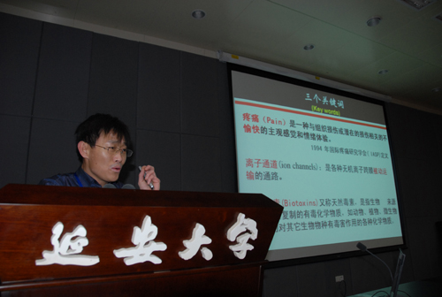 在11日举行的学术会议上,我校生命科学学院白占涛博士就《肽类钠通道调制剂致/抗疼痛的行为与细胞机制研究》、第四军医大学蒋建利教授就《肝癌的细胞分子网络调控机制研究》、西安交通大学刘健康教授就《线粒体:健康之本》、西北农林科技大学曾文先教授就《精原干细胞及其应用》等,分别作了大会专题报告。大会共安排了23场小组报告,并择优选出了6篇研究生优秀论文。本次会议学术层次高、组织有力,取得了预期的效果。