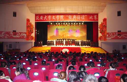 本网讯 11月22日晚,文学院在学校礼堂举行了以“品味经典,涵养人文”为主题的“经典诵读”比赛,共有15个班级参加了比赛。比赛邀请了教务处处长齐广才、团委书记姜庆、工会副主席徐宁、学生处副处长高峰、政法学院党委书记葛彬、校长办公室副主任兰鸿涛、生命科学学院党委副书记薛皓、教育科学学院党委副书记杨文军、医学院团委书记马莉等作为嘉宾。