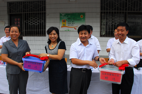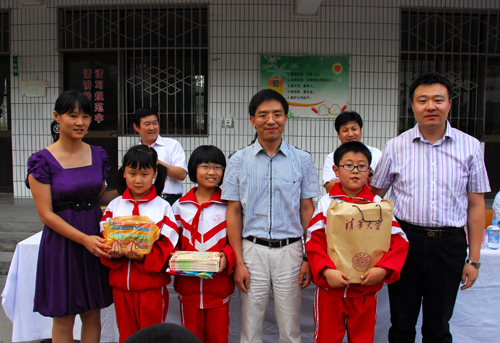 随后,实践团一行来到我校附属小学,在附属小学教学楼前,举行了北京市教育工会、北京高校青年教师社会实践团捐赠图书仪式。他们向附属小学捐赠了500余册图书及其他学习用品,总价值近万元,其中包括清华大学崔旭龙、北京师范大学张国龙、北京邮电大学宋晴3位教师的个人捐赠。高延龙副书记、张青山主席、刘欢副主席、白泽生副主席等领导及附属小学部分师生参加了捐赠仪式。捐赠仪式由我校普教处处长刘彦保主持。张青山主席、高延龙副书记和附属小学常务副校长张皎奋先后讲了话。高延龙副书记在讲话中希望附属小学管理好这些图书,最大限度地发挥其作用,引导学生勤奋学习,努力把学生培养成对祖国和社会有用的人才。