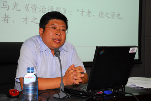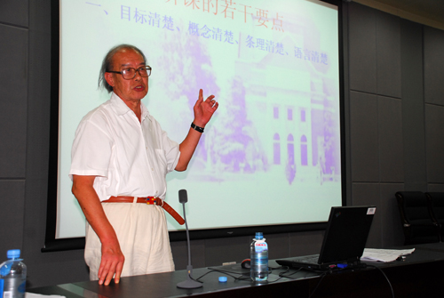 高延龙副书记和张青山主席先后进行了致辞和讲话。高延龙副书记在讲话中简要介绍了我校的基本情况,指出此次活动将是我校和北京高校合作交流的一个新起点,它将进一步促进我校与北京各高校间的交流与合作。高延龙副书记希望北京市教育工会能定期组织优秀教师来延安大学传经送宝,并借助北京市教育工会这座桥梁,使延安大学与北京高校间的合作交流渠道不断拓展,并形成长效机制。随后,第六届北京高校青年教师教学基本功比赛一等奖获得者、中国农业大学葛四平副教授,一等奖获得者、中国人民大学臧峰宇副教授和清华大学薛克宗教授先后为我校师生作了题为《教师应该具备的素质》、《怎样上好一堂课》和《一个青年教师对师德的理解》的报告。
