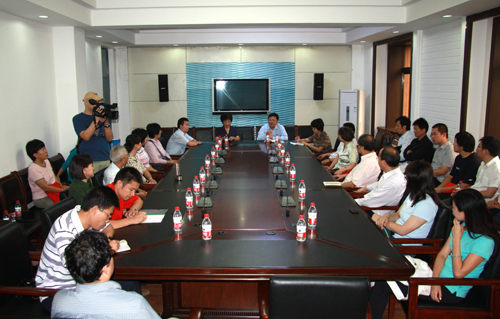 本网讯 9月20日上午,中国传媒大学教师学习考察团在党委副书记李焕生和工会常务副主席赵怡的带领下,来我校考察。我校党委副书记高延龙、接待办主任杨向宏等接待了考察团一行。