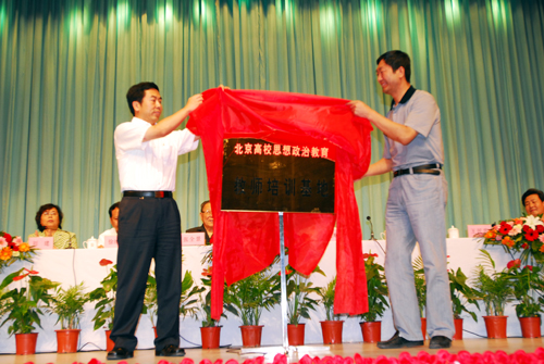 刘庆利副书记在开班仪式上致了辞,王民忠副书记介绍了教学安排和要求。随后,王安顺和张全景同志为北京高校思想政治教育教师延安学习实践团各班分别授了旗,王民忠副书记和刘庆利副书记为“延安大学北京高校思想政治教育教师培训基地”揭了牌。学员代表发了言。徐维凡副司长和王安顺书记先后在仪式上讲了话,对此次学习实践活动提出了明确要求和殷切希望。