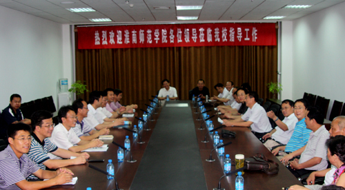 本网讯今天上午,安徽省淮南师范学院就业工作访问团一行17人,由党委副书记张中和带领,来我校考察交流。在图书馆二楼第一会议室,我校党委副书记、纪委书记刘庆利,党委委员、党办主任田伏虎,以及计算机学院、教育科学学院、财经学院,学生处、团委、就业指导中心等单位的相关负责同志,与访问团进行了座谈。